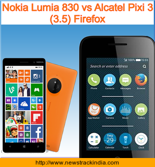 Main Features comparison of the devices Nokia Lumia 830 and Alcatel Pixi 3 (3.5) Firefox.