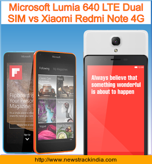 The mobile device Microsoft Lumia 640 LTE Dual SIM runs on Microsoft Windows Phone 8.1 with Lumia Denim. Whereas Xiaomi Redmi Note 4G runs on Android OS, v4.2 (Jelly Bean), upgradable to v4.4.2 (KitKat).