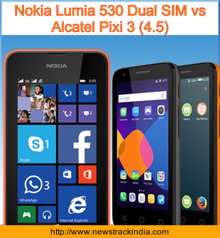 Nokia Lumia 530 Dual SIM is powered with Quad-core 1.2 GHz processor. Whereas Alcatel Pixi 3 (4.5) comes with Dual-core 1 GHz Cortex-A7 (3G model) Quad-core 1.1 GHz (4G model) processor.