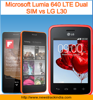 The mobile device Microsoft Lumia 640 LTE Dual SIM runs on Microsoft Windows Phone 8.1 with Lumia Denim. Whereas LG L30 runs on Android OS, v4.4.2 (KitKat).