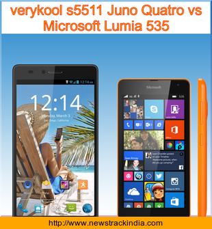 verykool s5511 Juno Quatro is powered with Quad-core 1.3 GHz Cortex-A7 processor. Whereas Microsoft Lumia 535 comes with Quad-core 1.2 GHz Cortex-A7 processor.