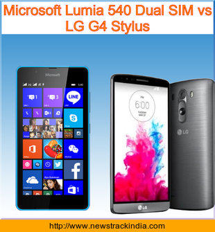 Main Features comparison of the devices Microsoft Lumia 540 Dual SIM and LG G4 Stylus.