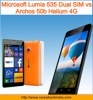 Main Features comparison of the devices Microsoft Lumia 535 Dual SIM and Archos 50b Helium 4G.