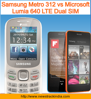 Main Features comparison of the devices Samsung Metro 312 and Microsoft Lumia 640 LTE Dual SIM.