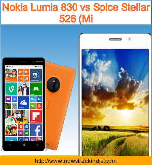 Check Nokia Lumia 830 vs Spice Stellar 526 (Mi : Comparison of Features and Specification in detail..