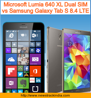 Main Features comparison of the devices Microsoft Lumia 640 XL Dual SIM and Samsung Galaxy Tab S 8.4 LTE.