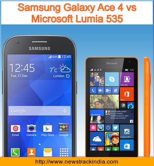 The mobile device Samsung Galaxy Ace 4 runs on Android OS, v4.4.2 (KitKat). Whereas Microsoft Lumia 535 runs on Microsoft Windows Phone 8.1.