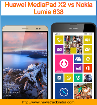 Check Huawei MediaPad X2 vs Nokia Lumia 638 : Comparison of Features and Specification in detail..