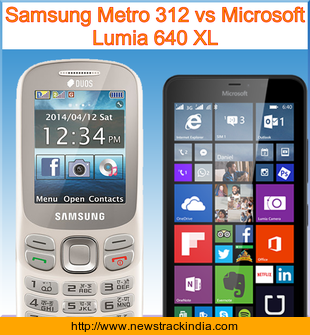 Main Features comparison of the devices Samsung Metro 312 and Microsoft Lumia 640 XL.
