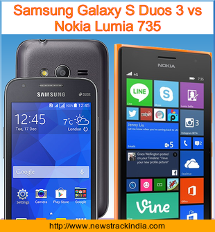 The mobile device Samsung Galaxy S Duos 3 runs on Android OS, v4.4.2 (KitKat). Whereas Nokia Lumia 735 runs on Microsoft Windows Phone 8.1, planned upgrade to Windows 10.