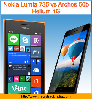 Check Nokia Lumia 735 vs Archos 50b Helium 4G : Comparison of Features and Specification in detail..