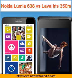 The mobile device Nokia Lumia 638 runs on Microsoft Windows Phone 8.1. Whereas Lava Iris 350m runs on Android OS, v4.2.2 (Jelly Bean).
