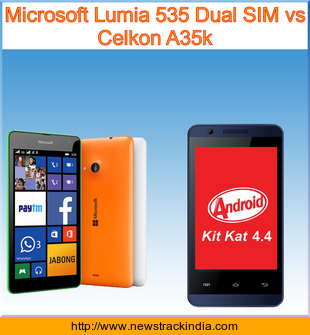 The mobile device Microsoft Lumia 535 Dual SIM runs on Microsoft Windows Phone 8.1. Whereas Celkon A35k runs on Android OS, v4.4.2 (KitKat).