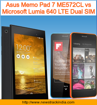 Asus Memo Pad 7 ME572CL is powered with Quad-core 1.83 GHz processor. Whereas Microsoft Lumia 640 LTE Dual SIM comes with Quad-core 1.2 GHz Cortex-A7 processor.