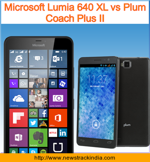 The mobile device Microsoft Lumia 640 XL runs on Microsoft Windows Phone 8.1 with Lumia Denim. Whereas Plum Coach Plus II runs on Android OS, v4.4.2 (KitKat).