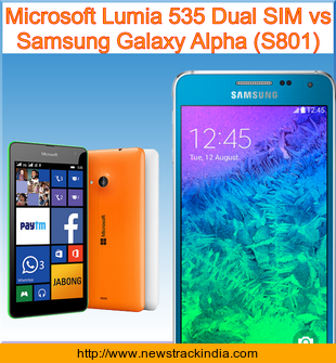 Main Features comparison of the devices Microsoft Lumia 535 Dual SIM and Samsung Galaxy Alpha (S801).