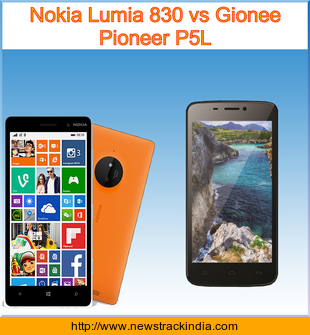 Check Nokia Lumia 830 vs Gionee Pioneer P5L : Comparison of Features and Specification in detail..