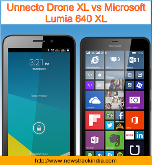 The mobile device Unnecto Drone XL runs on Android OS, v4.4.2 (KitKat). Whereas Microsoft Lumia 640 XL runs on Microsoft Windows Phone 8.1 with Lumia Denim.