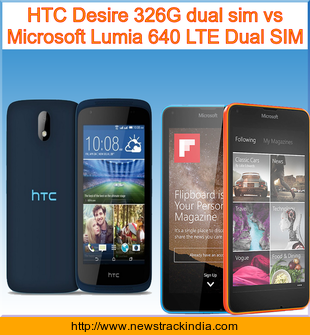 Main Features comparison of the devices HTC Desire 326G dual sim and Microsoft Lumia 640 LTE Dual SIM.