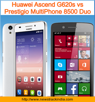 The mobile device Huawei Ascend G620s runs on Android OS, v4.4.2 (KitKat). Whereas Prestigio MultiPhone 8500 Duo runs on Microsoft Windows Phone 8.1.