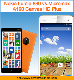 Main Features comparison of the devices Nokia Lumia 830 and Micromax A190 Canvas HD Plus.
