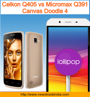 The mobile device Celkon Q405 runs on Android OS, v4.4 (KitKat). Whereas Micromax Q391 Canvas Doodle 4 runs on Android OS, v5.0 (Lollipop).