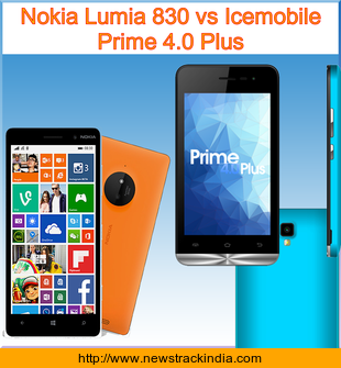The mobile device Nokia Lumia 830 runs on Microsoft Windows Phone 8.1. Whereas Icemobile Prime 4.0 Plus runs on Android OS, v4.4.2 (KitKat).