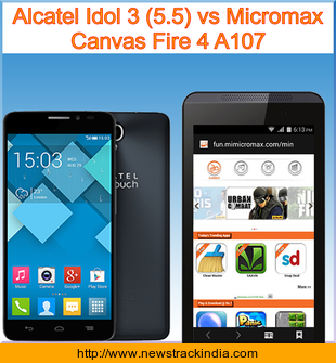 The mobile device Alcatel Idol 3 (5.5) runs on Android OS, v5.0.x (Lollipop). Whereas Micromax Canvas Fire 4 A107 runs on Android OS, v5.0 (Lollipop).