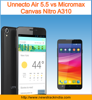 The mobile device Unnecto Air 5.5 runs on Android OS, v4.4.2 (KitKat). Whereas Micromax Canvas Nitro A310 runs on Android OS, v4.4.2 (KitKat).