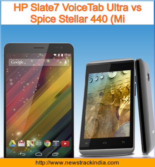 HP Slate7 VoiceTab Ultra is powered with Quad-core 1.6 GHz Cortex-A9 processor. Whereas Spice Stellar 440 (Mi comes with Dual-core 1 GHz processor.