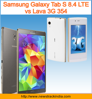 The mobile device Samsung Galaxy Tab S 8.4 LTE runs on Android OS, v4.4.2 (KitKat). Whereas Lava 3G 354 runs on Android OS, v4.2 (Jelly Bean).
