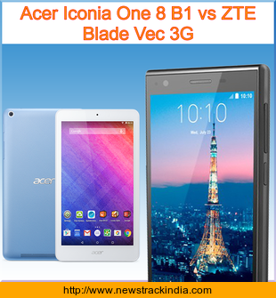 Check Acer Iconia One 8 B1 vs ZTE Blade Vec 3G : Comparison of Features and Specification in detail..