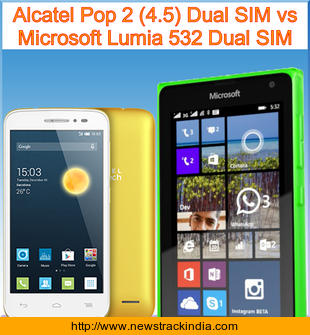 Main Features comparison of the devices Alcatel Pop 2 (4.5) Dual SIM and Microsoft Lumia 532 Dual SIM.