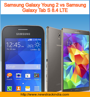Samsung Galaxy Young 2 is powered with 1 GHz Cortex-A7 processor. Whereas Samsung Galaxy Tab S 8.4 LTE comes with Quad-core 2.3 GHz Krait 400 (S800) Quad-core 1.9GHz Cortex-A15 & quad-core 1.3 GHz Cortex-A7 (Exynos 5420) processor.