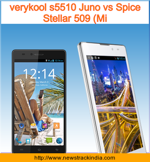 The mobile device verykool s5510 Juno runs on Android OS, v4.4.2 (KitKat). Whereas Spice Stellar 509 (Mi runs on Android OS, v4.4.2 (KitKat).