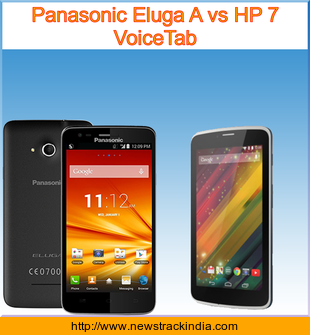 Panasonic Eluga A is powered with Quad-core 1.2 GHz Cortex-A7 processor. Whereas HP 7 VoiceTab comes with Quad-core 1.3 GHz Cortex-A7 processor.