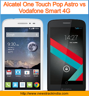 The mobile device Alcatel One Touch Pop Astro runs on Android OS, v4.4.2 (KitKat). Whereas Vodafone Smart 4G runs on Android OS, v4.2.2 (Jelly Bean).