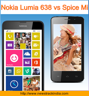 Check Nokia Lumia 638 vs Spice Mi : Comparison of Features and Specification in detail..