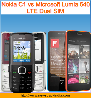 Main Features comparison of the devices Nokia C1 and Microsoft Lumia 640 LTE Dual SIM.