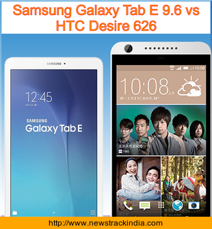 Samsung Galaxy Tab E 9.6 is powered with Quad-core 1.3 GHz processor. Whereas HTC Desire 626 comes with Octa-core 1.7 GHz Cortex-A53 Quad-core 1.2 GHz Cortex-A53 processor.