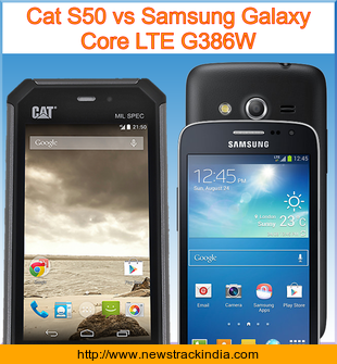 Main Features comparison of the devices Cat S50 and Samsung Galaxy Core LTE G386W.