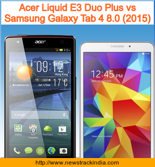 Main Features comparison of the devices Acer Liquid E3 Duo Plus and Samsung Galaxy Tab 4 8.0 (2015).