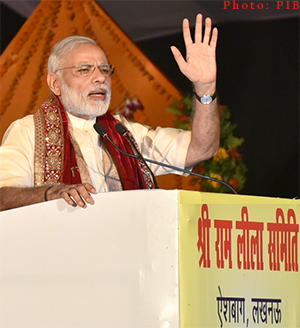 The Prime Minister, Shri Narendra Modi, addressed a public gathering at the Dussehra Mahotsav at Aishbagh Ramleela Ground in Lucknow yesterday.