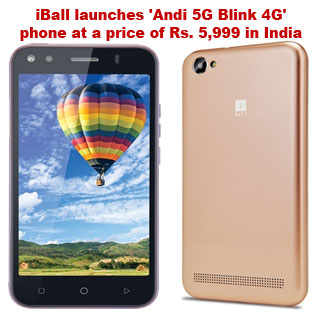 iBall launches 'Andi 5G Blink 4G' Android Marshmallow 6.0 based mobile phone at a price of Rs. 5,999 in India. Phone will be available through various stores in India. iBall's 'Andi 5G Blink 4G' comes with many features and its all-in-one phone in the Indian market.