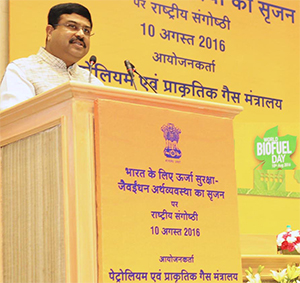 The Minister of State (Independent Charge) for Petroleum & Natural Gas Sh. Dharmendra Pradhan has said that there is a large potential of Bio-Fuel business in India to grow from present Rs. 6500 crore to Rs. 1 lakh crore in the next 10 years. Speaking at the National Conference on the World Bio-Fuel Day in New Delhi today, he said that the Prime Minister has set a target of 10% import reduction in crude by 2022 and bio-fuels can play an important role in achieving the target. Shifting the fuel consumption profile to bio-fuels derived from domestic feed stocks would lead to decrease in this dependence on crude oil imports. He said in the last 2 years, lot of work has been done in Ethanol Blending Programme, Bio-Diesel as well as using the Bio-waste for converting to energy but more needs to be done speedily. He said India’s energy consumption is increasing very fast and it has become the third largest consumer in the world. Sh. Dharmendra Pradhan said that the Bio-fuel Programme has the capacity to provide better remuneration for farmers, address environmental concerns, reduce dependence on imports and help in foreign exchange savings. The Petroleum Minister said the Government is willing to provide conducive policy environment to support development of Bio-fuel but import of raw material or waste for this purpose cannot be allowed.