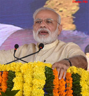 The Prime Minister, Shri Narendra Modi today unveiled a plaque to launch the Saurashtra Narmada Irrigation (SAUNI) Project at Sanosara in Gujarat.