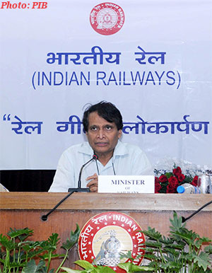 Minister of Railways Shri Suresh Prabhakar Prabhu today dedicated a "Rail Geet" (Railway Song) to the nation. The initial wordings of the song are - "Bharat ki Rail Mahan hai - Pragati ki Pehchan hai - Bharat ki ye Shan hai - Desh ki ye Jaan hai - Indian Railways, We love Indian Railways"