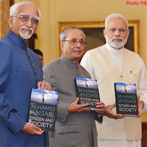 The President of India, Shri Pranab Mukherjee released the book 'Citizen and Society' written by Vice President Shri Mohd Hamid Ansari today (September 23, 2016) at a function held at Rashtrapati Bhavan in the presence of Prime Minister Shri Narendra Modi.