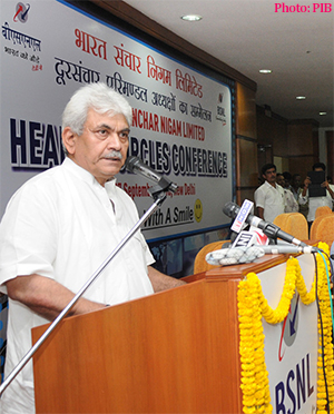 The Telecom Minister Shri Manoj Sinha today gave a stern message to BSNL that he will not tolerate any delay and the Telecom PSU should connect one lakh Gram Panchayats (GPs) through Optical Fibre Cable (OFC) to set up a network infrastructure to serve the rural masses. He said, all are working with zeal to achieve the target of connecting 2.5 lakh Gram Panchayats with Broadband Network within stipulated timeframe, which is the vision of the Prime Minister Shri Narendra Modi for Digital India. Speaking at an award ceremony function of BSNL here, Shri Sinha said, those who are working with zeal should be rewarded and those should take VRS from where reports of negative growth is coming on a continuous basis.
