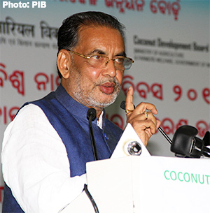Union Minister of Agriculture and Farmers Welfare, Shri Radha Mohan Singh today addressed the farmers on World Coconut Day and National Award presentation ceremony in Bhubaneswar. On the occasion the Minister said that, India is a leading country in coconut production and productivity in the world. Our annual coconut production is 2044 crore coconut from 19.8 lakh hectare area and the productivity per hectare is 10345 coconut. The contribution of coconut in country's GDP is about Rs. 20,000 crore. In 2015-16, from our country, coconut products of Rs. 1450 crore value have been exported. He also said that over one crore people in our country are dependent on coconut crop for their livelihood.